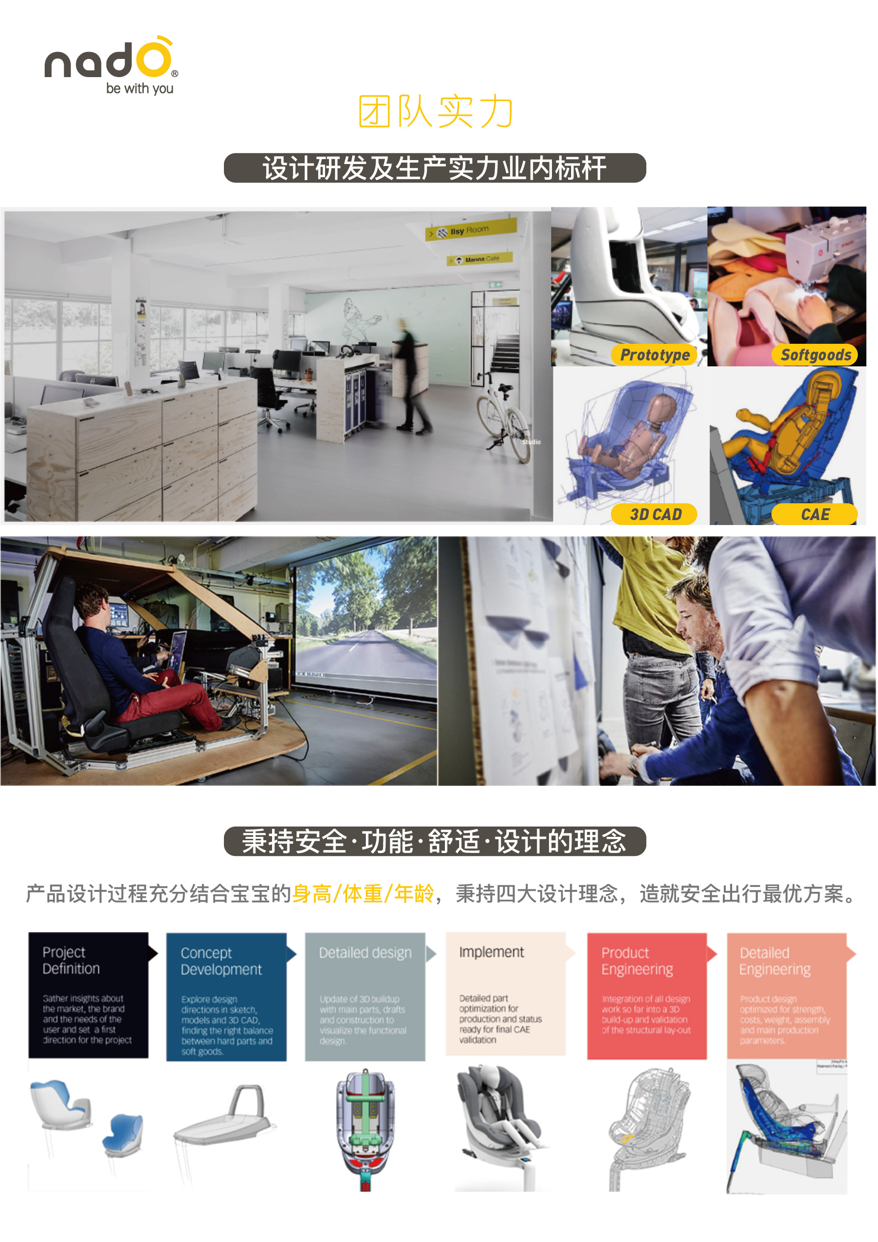 nadO产品设计过程充分结合宝宝的身高/体重/年龄,秉持安全性、功能性、设计感、舒适度四大设计理念,打造安全出行最优方案。全系列产品均有中欧双标认证,安全性高。全球年销量30万台+,无一次召回事件,产品稳定性极强。